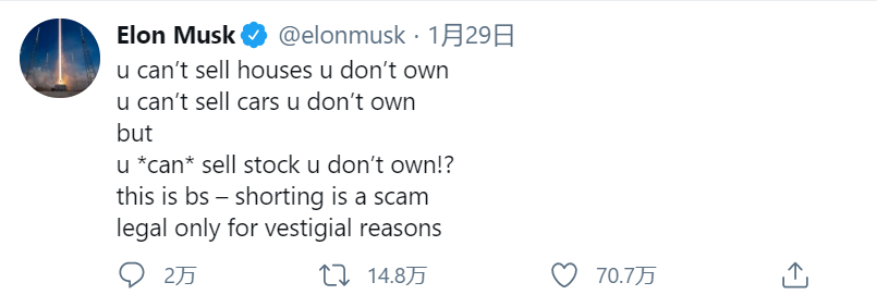 马斯克也发推,指路WallStreetBet,给GME的股价添了一把火。