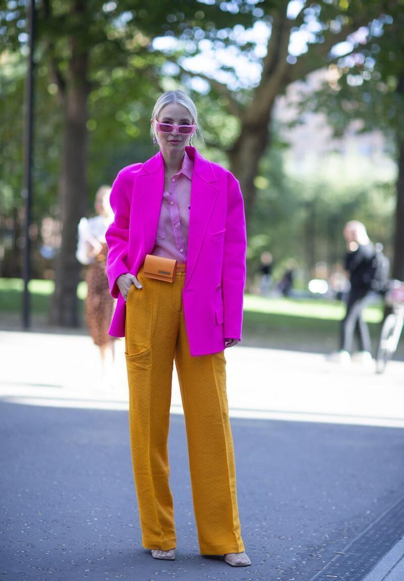将腰包与西装西裤进行搭配,能够打破造型的严肃感,增添了一丝时尚的气息,时髦精们早就开始这样穿了。
