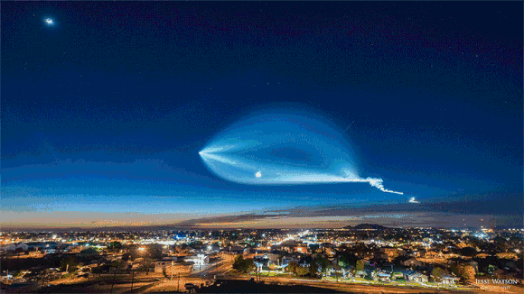 另外还有一个不可忽视的重点是,拜科努尔发射场起飞的火箭到达高空时仍然能被阳光照到,这些喷出物在阳光的照射下能被位于它星下点的大范围民众看到,这个也被称为暮光效应,其实就是喷出的颗粒物反射阳光而已,没什么特殊的形成原因。