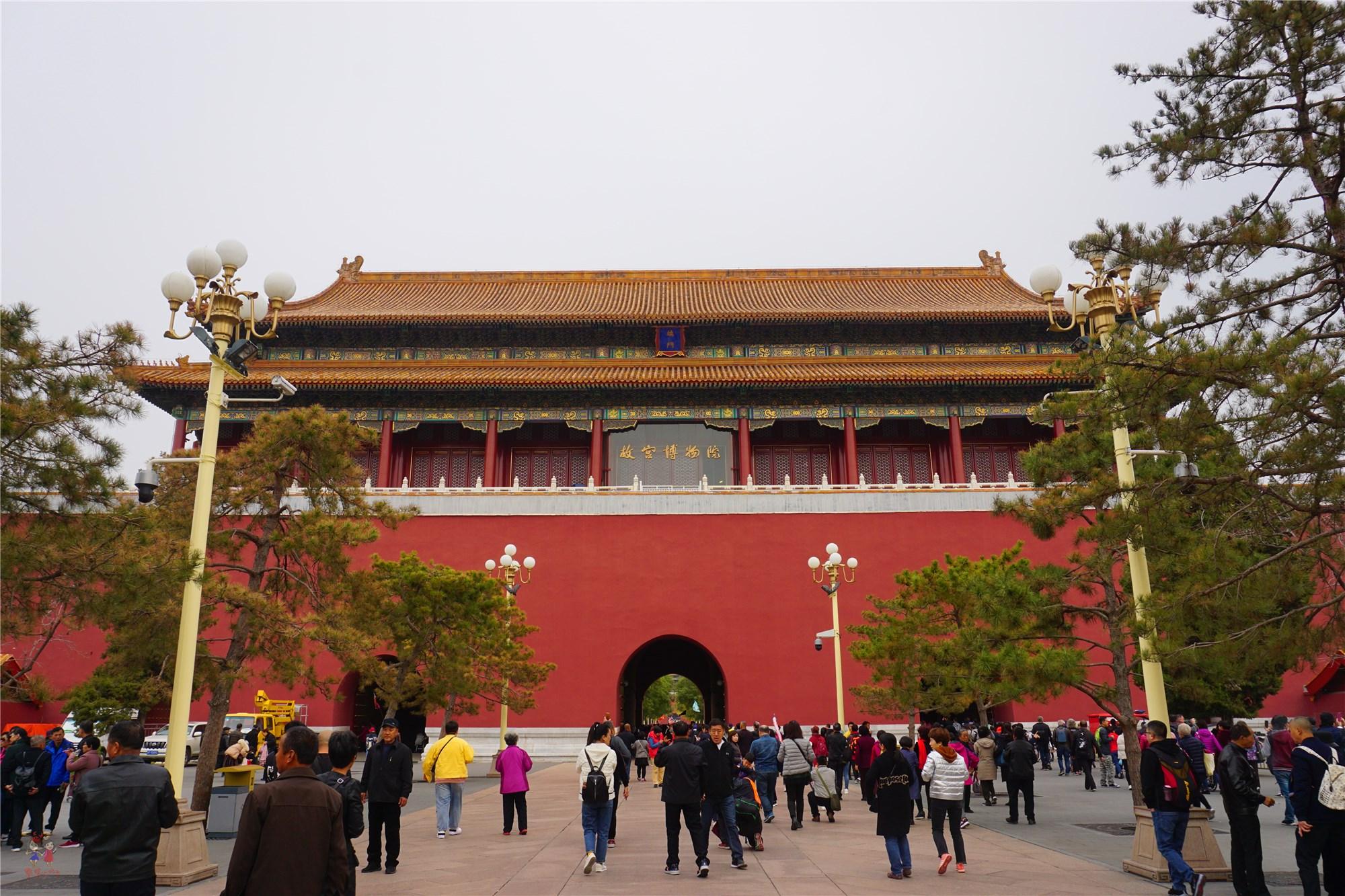 进入故宫前有统一的路线,首先要穿过两个门,第一个便是天安门。所以如果是第一次来北京玩,还想看升旗仪式的话,可以当天一早先到天安门广场看升旗仪式,然后转转天安门广场,之后就可以参观故宫了,这样的路线最省时、省力。
